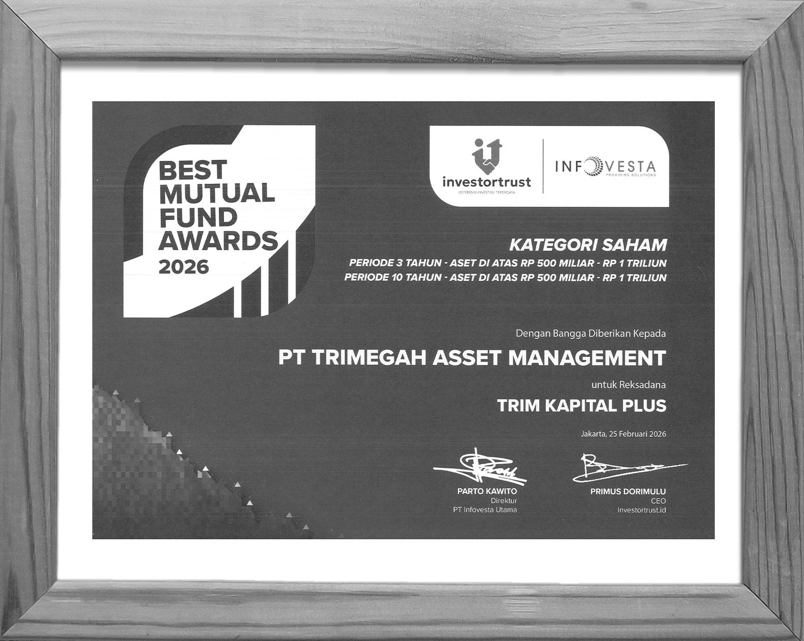 Trimegah Saham Nusantara, Kategori Saham, Periode 3 tahun Aset di Atas Rp1 Triliun - Investortrust Infovesta Best Mutual Fund Awards 2026