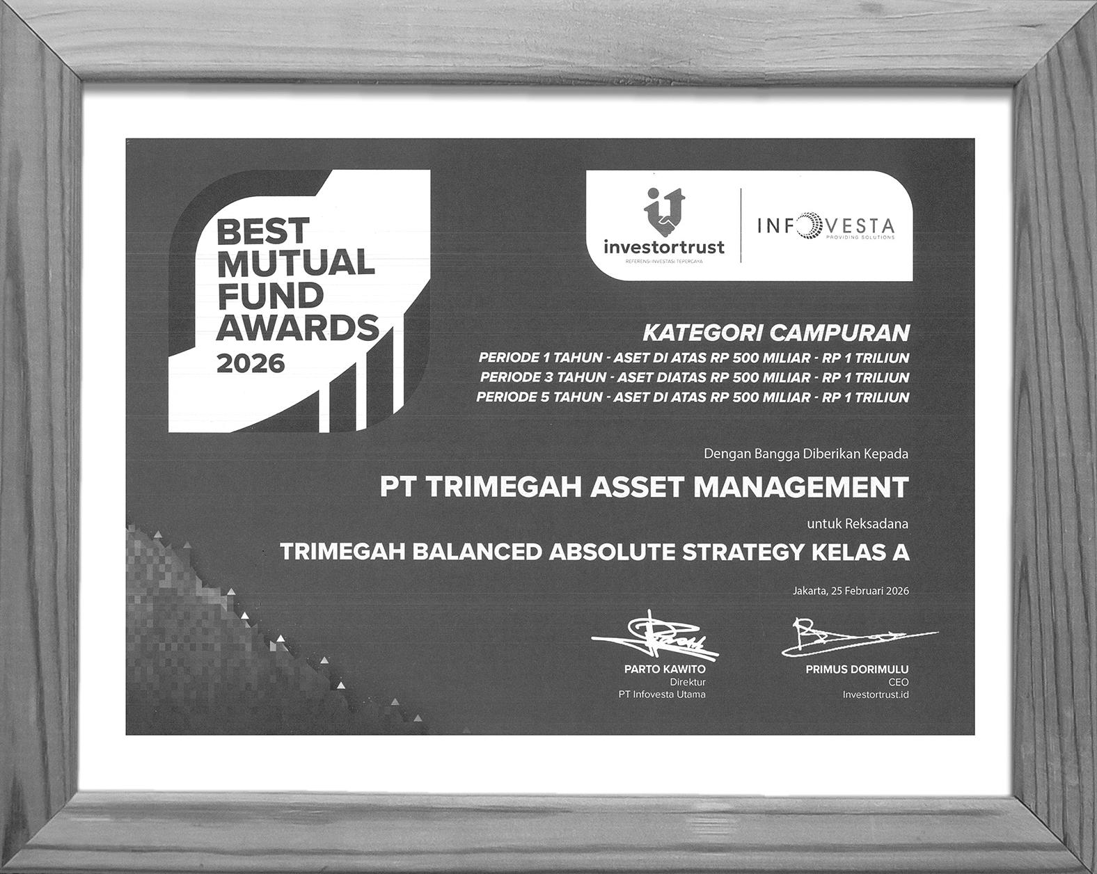 Trimegah Balanced Absolute Strategy Kelas A, Kategori Campuran, Periode 1 tahun, 3 tahun , dan 5 tahun Aset di Atas Rp500 Miliar - Rp1 Triliun - Investortrust Infovesta Best Mutual Fund Awards 2026